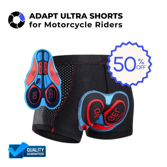 If you’re suffering butt and back pain, chafing, redness, discomfort, or anything that makes it hard to ride, Adapt Ultra Shorts for Motorcycle Riders may be the solution you’re looking for!